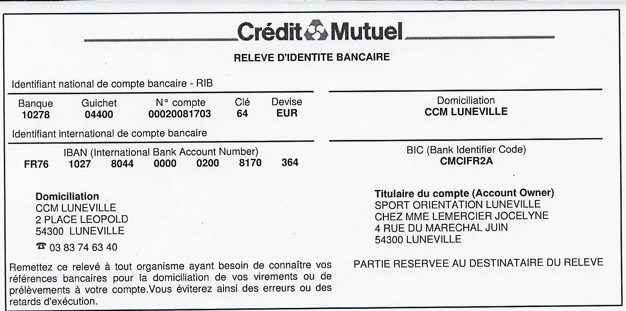 3 - paiement par chèque (à l'ordre du : SOL) ou en espèces ou par virement RIB SOL .